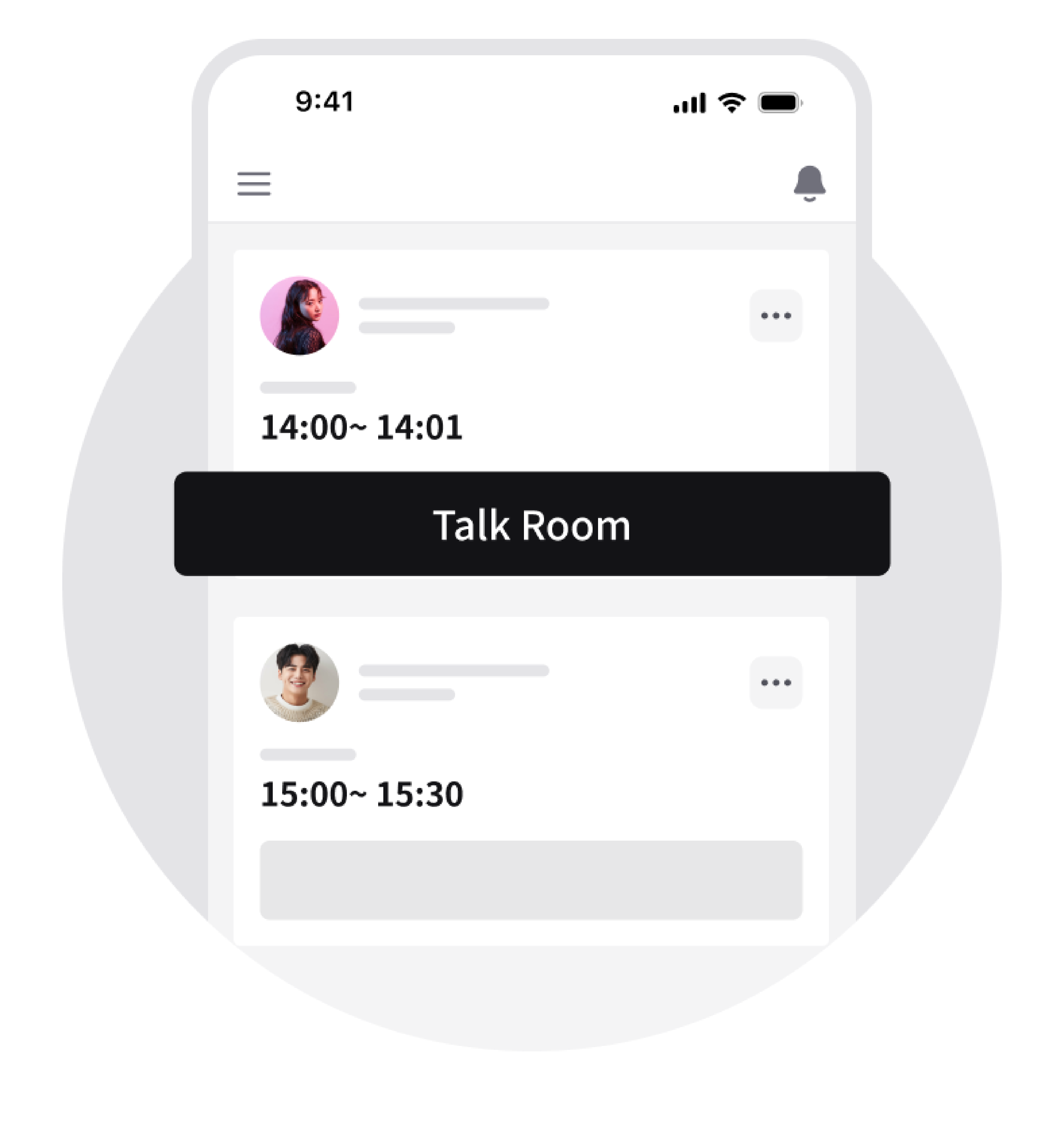 一覧に予約したトークを表示します。時間が近くなったら「トークルームへ」をタップしてトークの準備をしましょう。まもなく通話開始です。